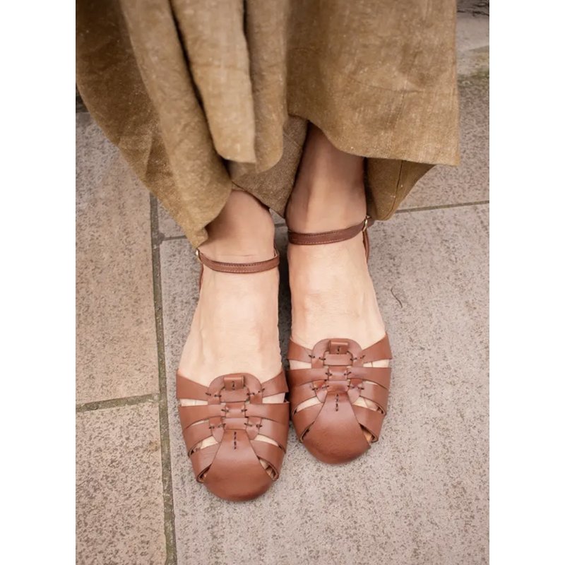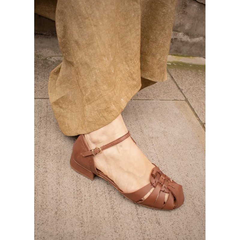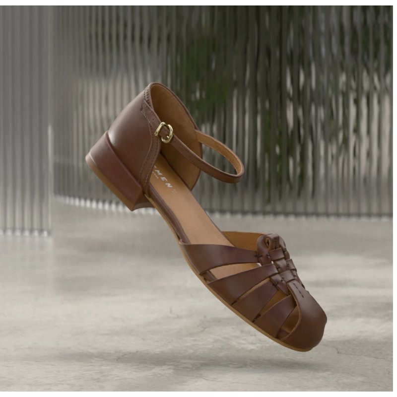 Flot elegant sandal fra Pavement i brun skind. Sandalen har fine lukkede remme ude foran, og en elegant ankelrem samt lukket hælkappe. Super fin til både hverdag og fest.