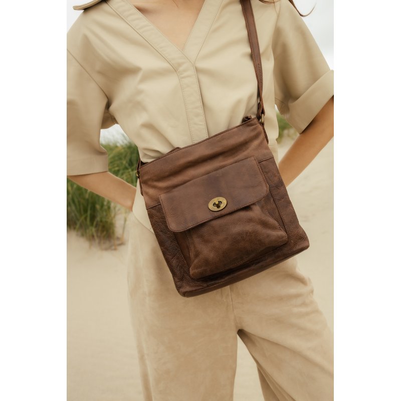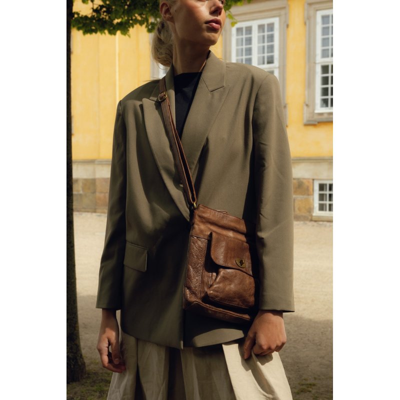 Den skønne klassiske Kay taske fra RE:DESIGNED i den nye mørkebrune skind. Tasken har gode rum, og rum indvendigt også. Justerbar rem