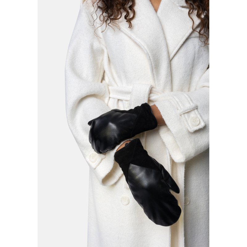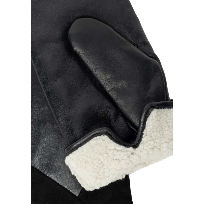 Lækre skindluffer fra RE:DESIGNED i sort skind, kombineret med ruskindsdetaljer. Handsken har fleece foer, og derudover er der touch funktion, så man kan bruge dem på sin smartphone, uden at tage handskerne af.
