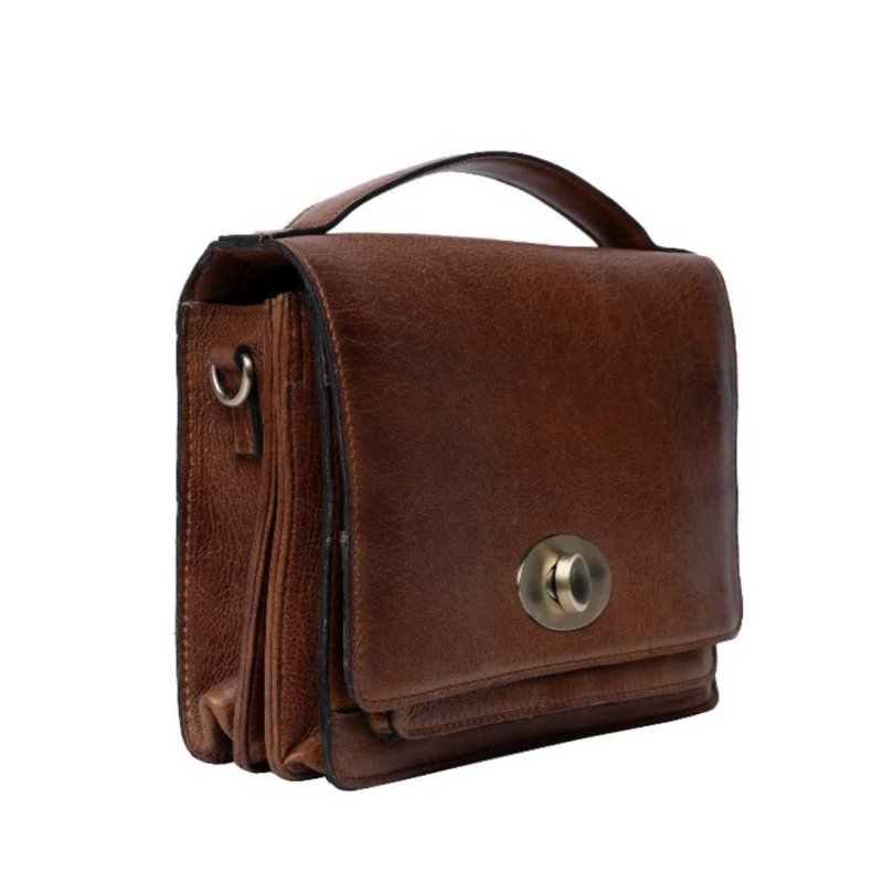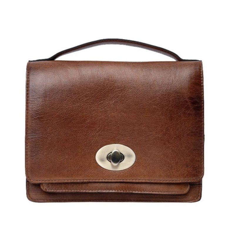 Meget lækker taske fra RE:DESIGNED i walnut skind. Tasken har meget plads indvendigt, og er delt op i flere rum. Lukkes med en smart lukning man lige drejer på.
