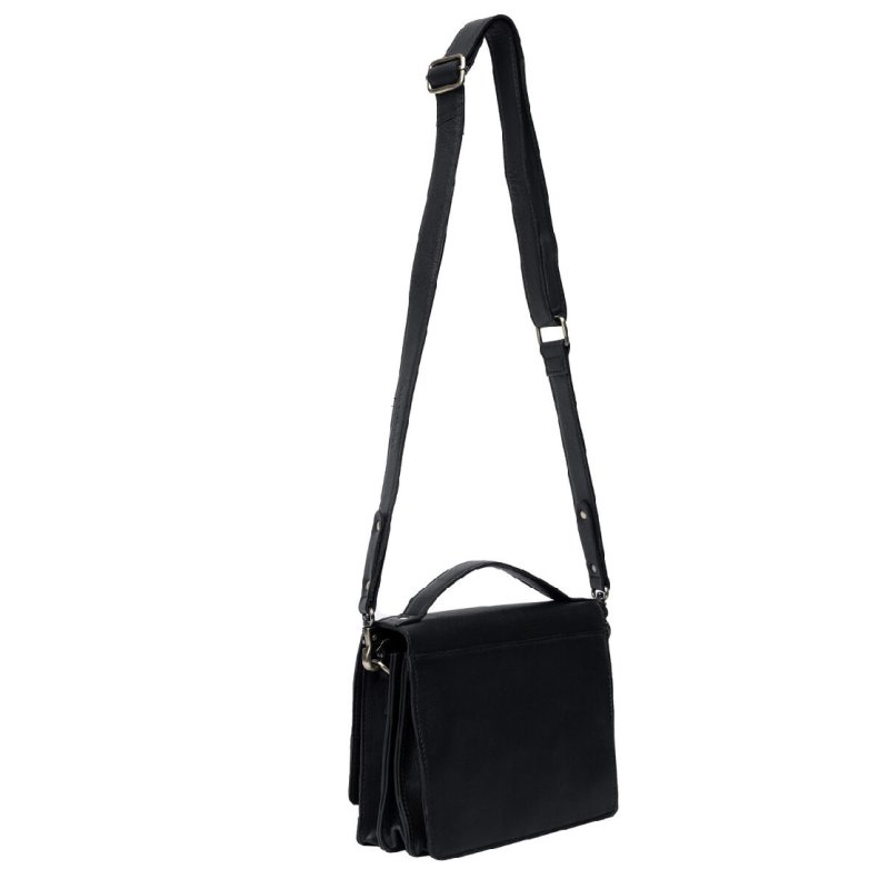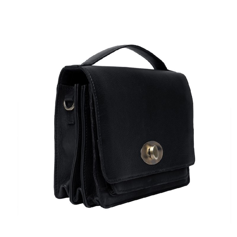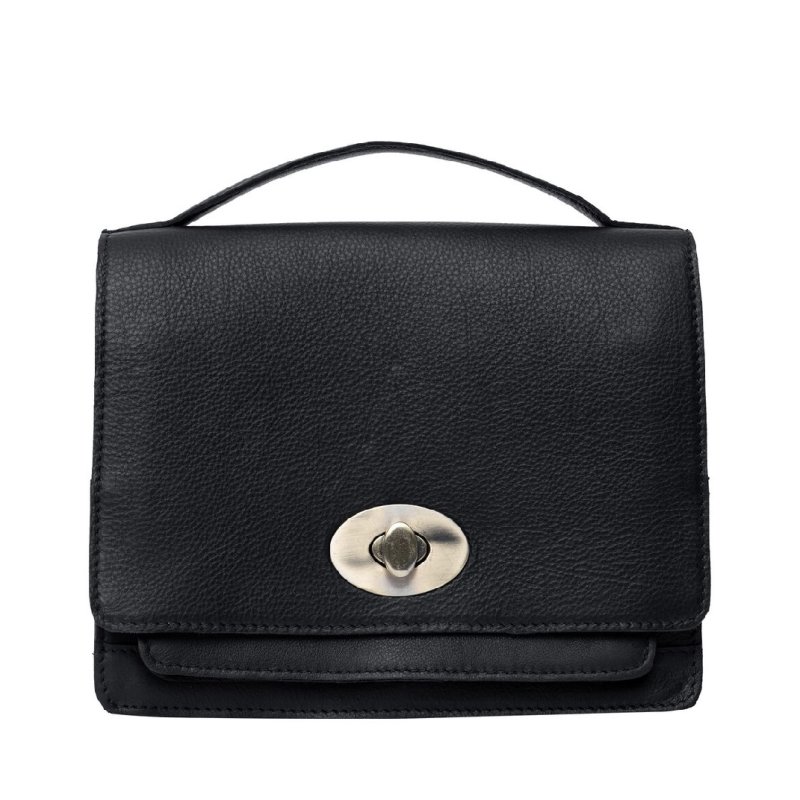 Meget lækker taske fra RE:DESIGNED i sort skind. Tasken har meget plads indvendigt, og er delt op i flere rum. Lukkes med en smart lukning man lige drejer på.