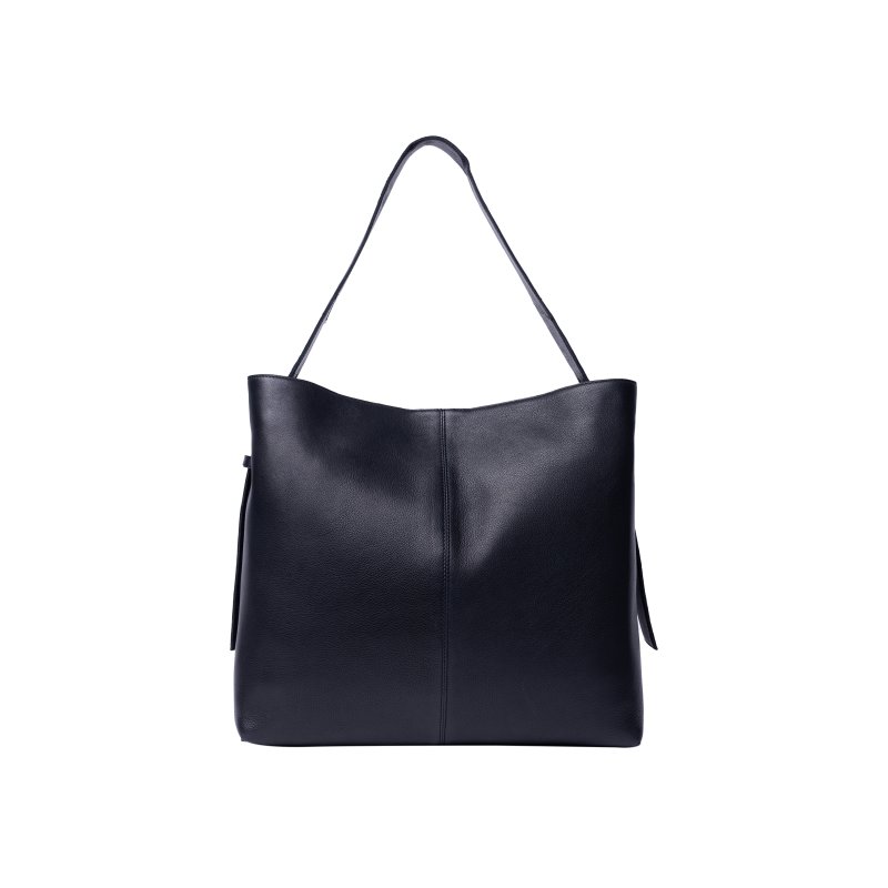 Meget lækker taske fra RE:DESIGNED i sort skind, med masser plads indvendigt