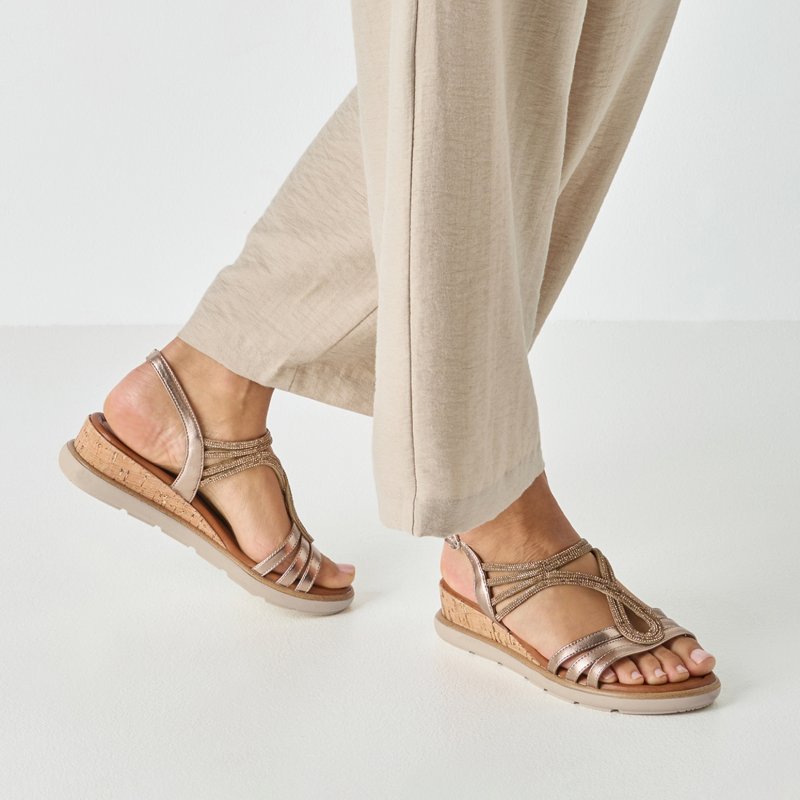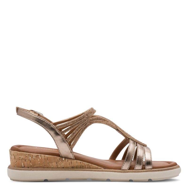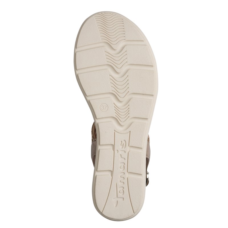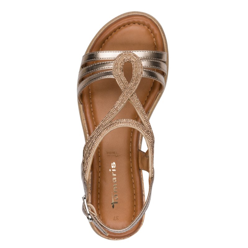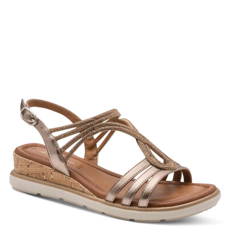 Skønne sandaler fra Tamaris, i metallic skind med glitter detaljer. En sandal der kan bruges til både hverdag og fest. Sålen er en fantastisk blød sål, som har en lille kilehæl.