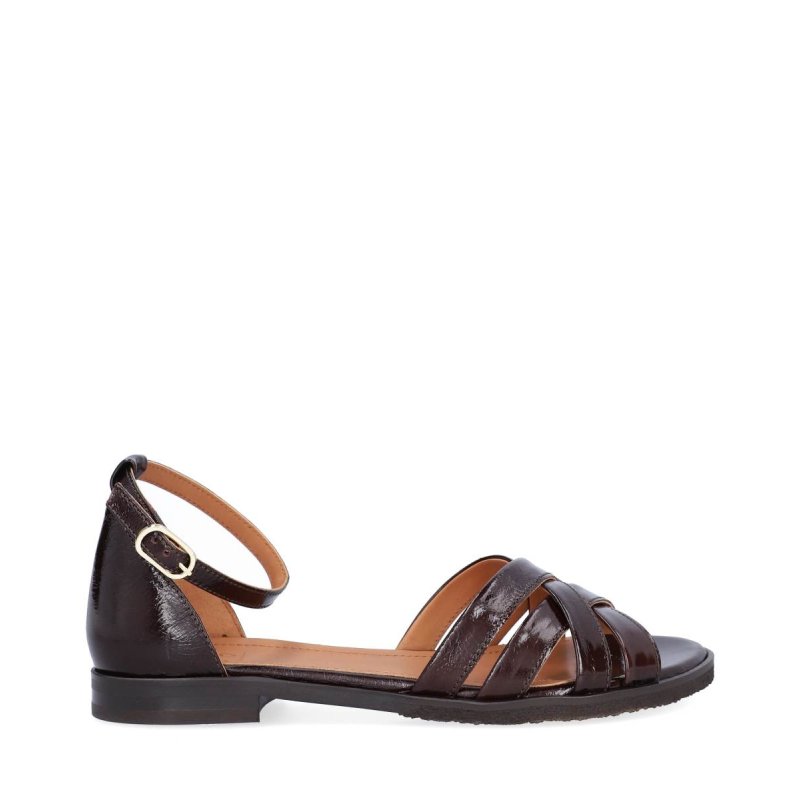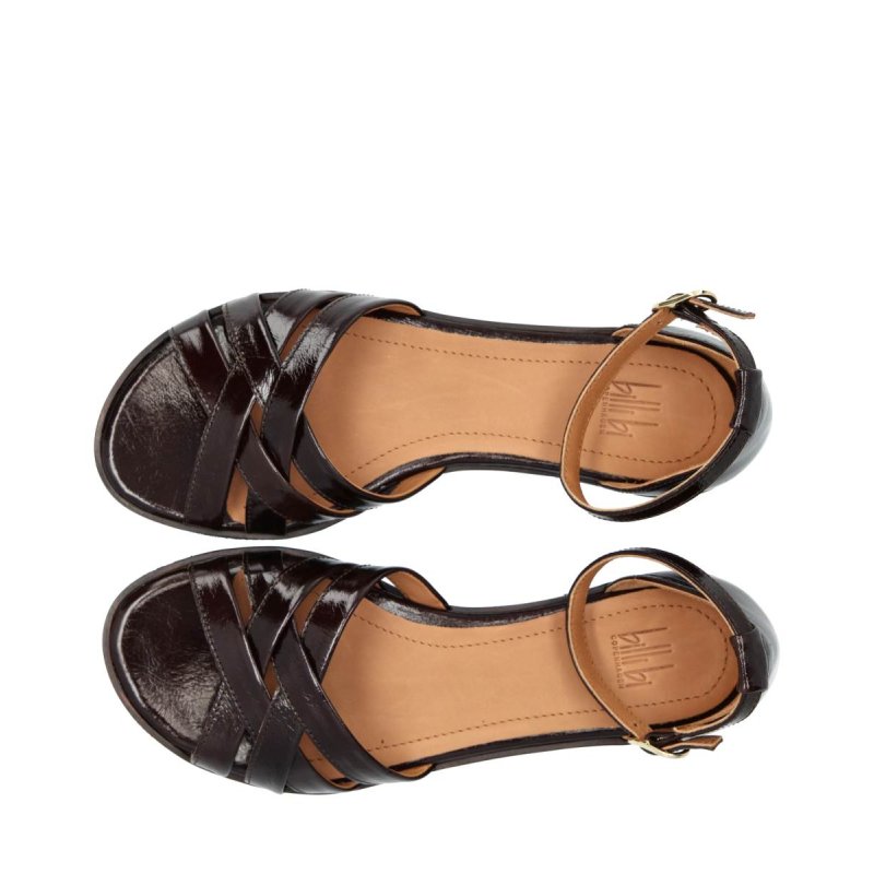 Super lækre og samtidig fantastiske komfortable sandaler fra Billi Bi i mørkebrun lakskind. Sandalen har rågummisål på forreste stykke, og almindelig hælflik bagtil. Elegant udtryk med lukket hælkappe, og fine remme fortil