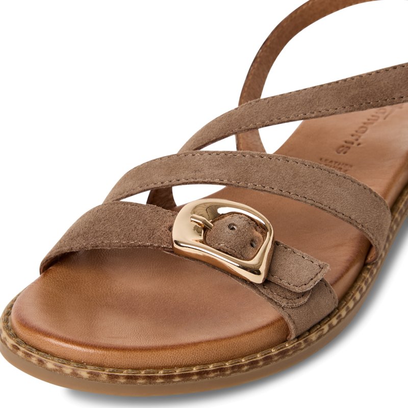 Så fin sandal fra Tamaris, med et meget eksklusivt udtryk. Flot taupe ruskind, med de smukkeste spænder, som giver en rigtig flot detalje.