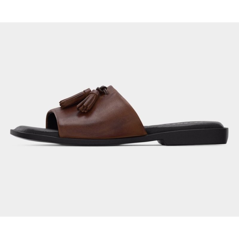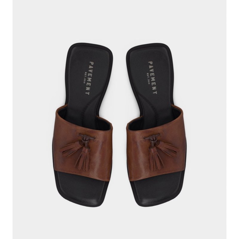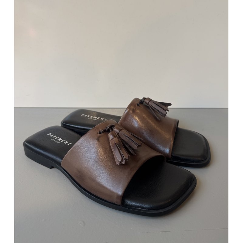 Pavement Paulina slip in sandal i brun læder