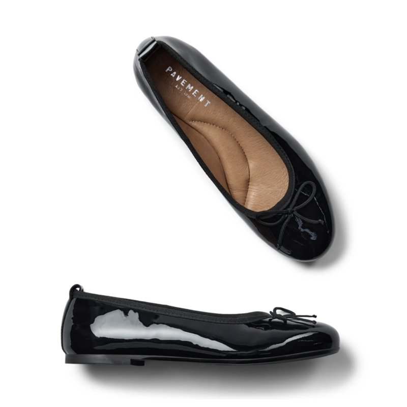 Super lækker ballerina sko fra Pavement i sort lakskind, med en sløjfe fortil. Sålerne er ekstra bløde indersåler, med puder og rigtig god komfort.
