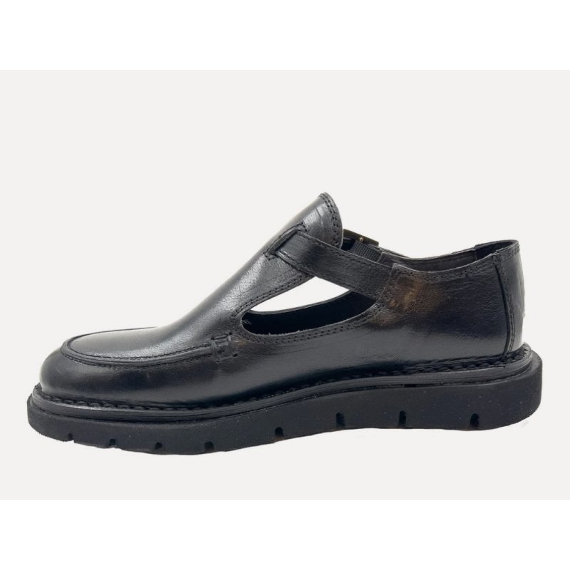 Meget smart loafer sko fra Bubetti i sort skind, med rem over foden. Skoen er med de nye populære letvægts såler.