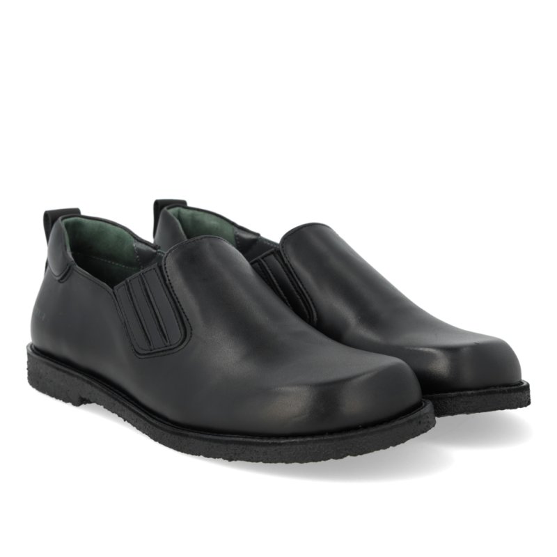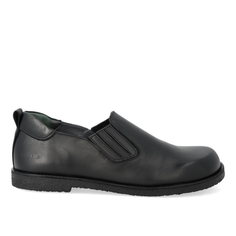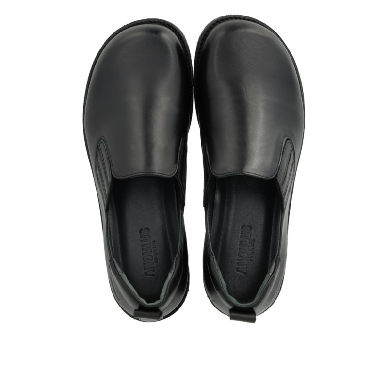 De mest fantastiske og komfortable sko fra Angulus, i sort glat skind. Skoen er fodformet efter foden, og er lige til at stikke i, med et lille stykke elastik på siden. Bløde rågummisåler.