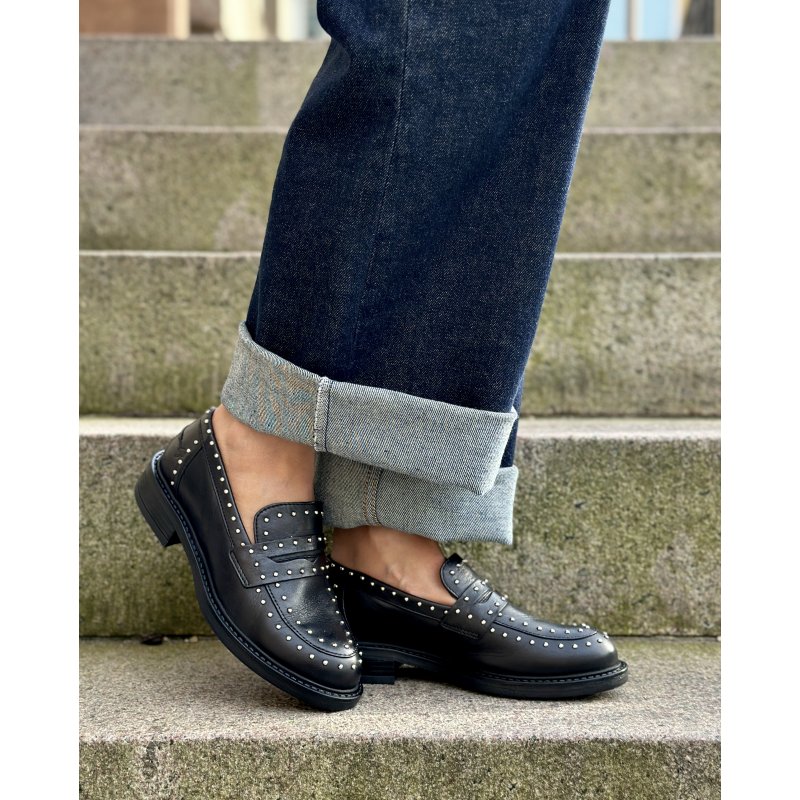 Klassisk lækker blød loafer fra Shoedesign Copenhagen. Skoen er i lækker blødt skind, med nitter rundt omkring, og med komfortable gummisåler.'