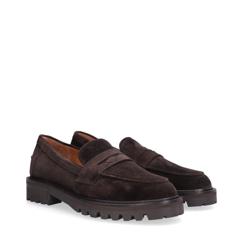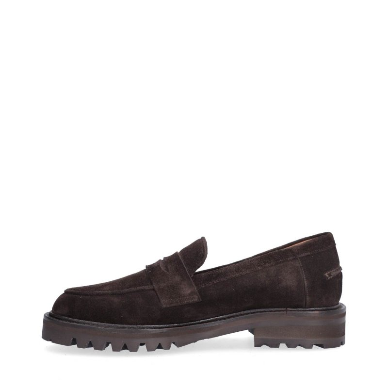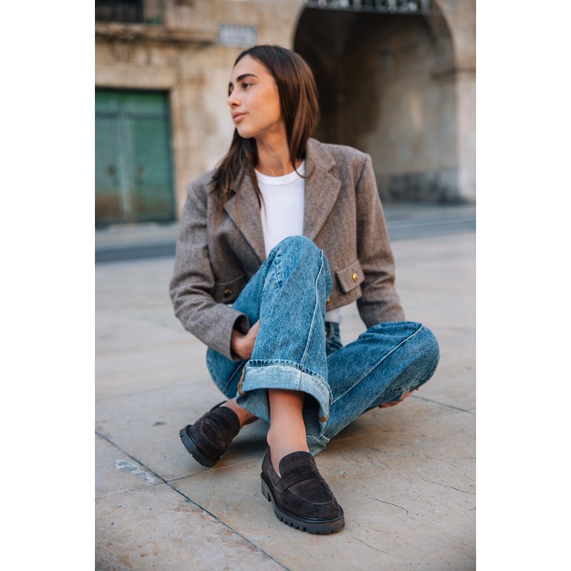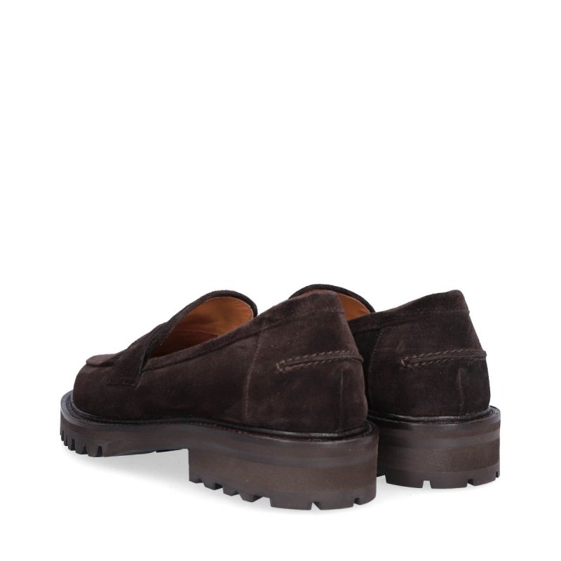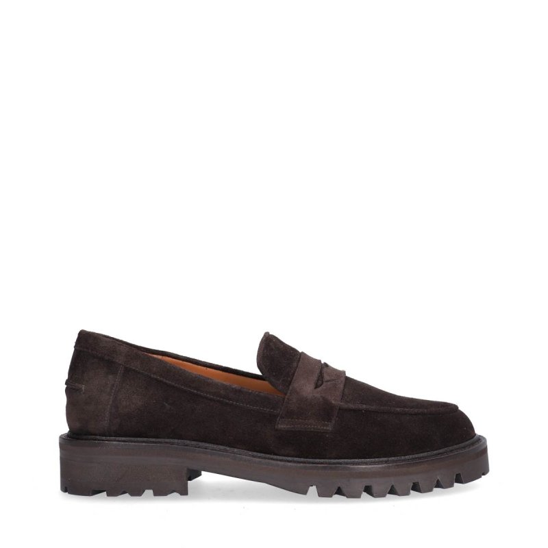 Meget lækker håndlavet loafer udført i mørkebrunt ruskind med rund tå. Skoen har fine detaljer foran. Derudover har loaferen en track sål, som giver en fantastisk komfort.