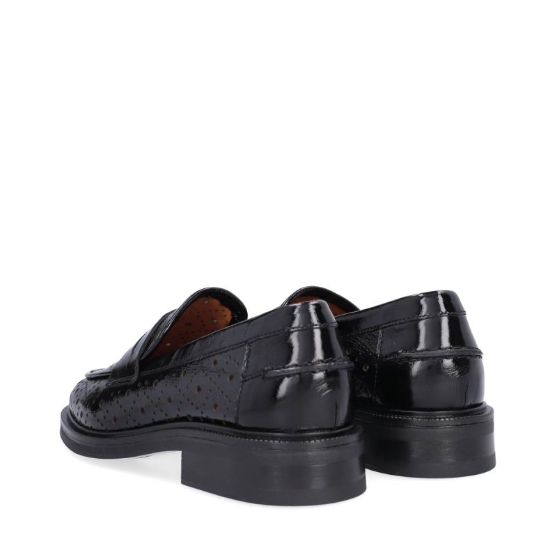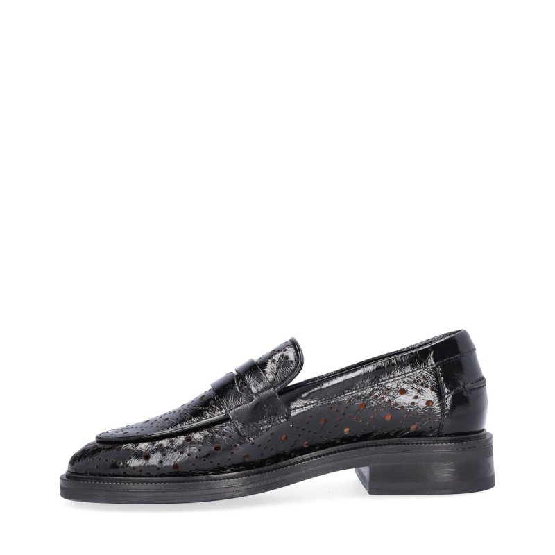 Meget lækre loafers fra Billi Bi, i sort lakskind med hulmønster. Skoen er skindforet, og former sig hurtigt efter foden. Smart med forskellige fine strømper i.