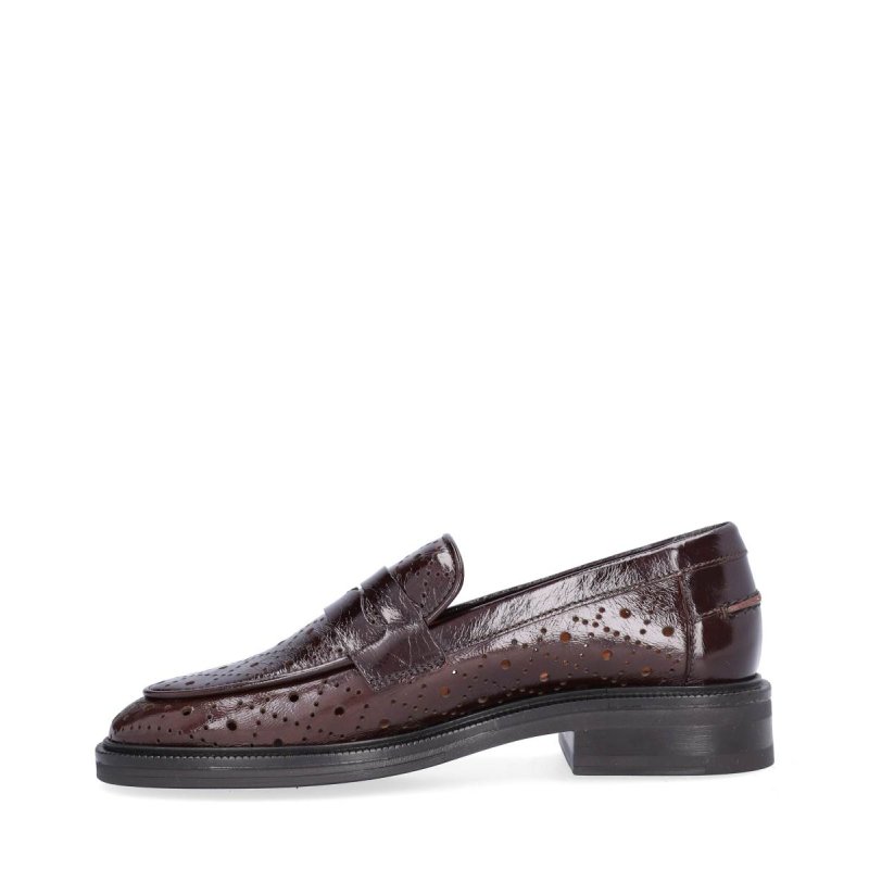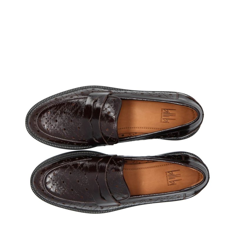 Meget lækre loafers fra Billi Bi, i mørkebrun lakskind med hulmønster. Skoen er skindforet, og former sig hurtigt efter foden. Smart med forskellige fine strømper i.