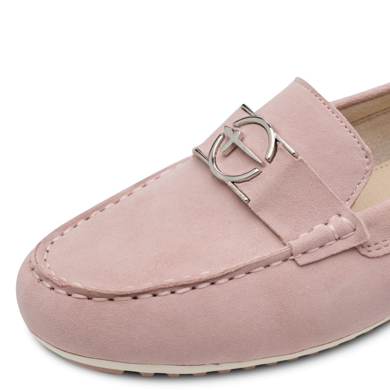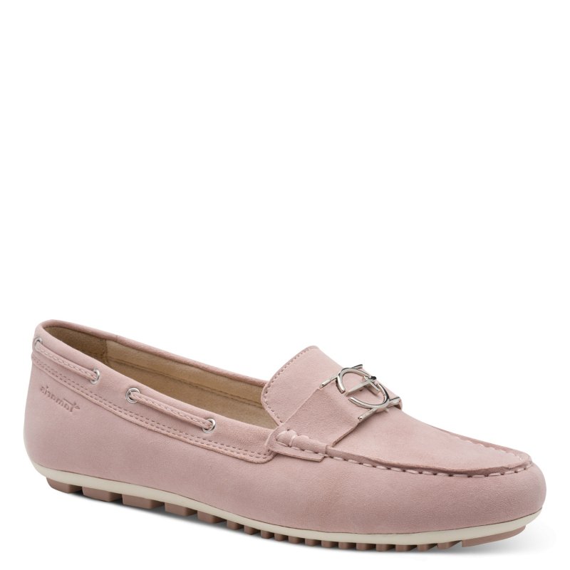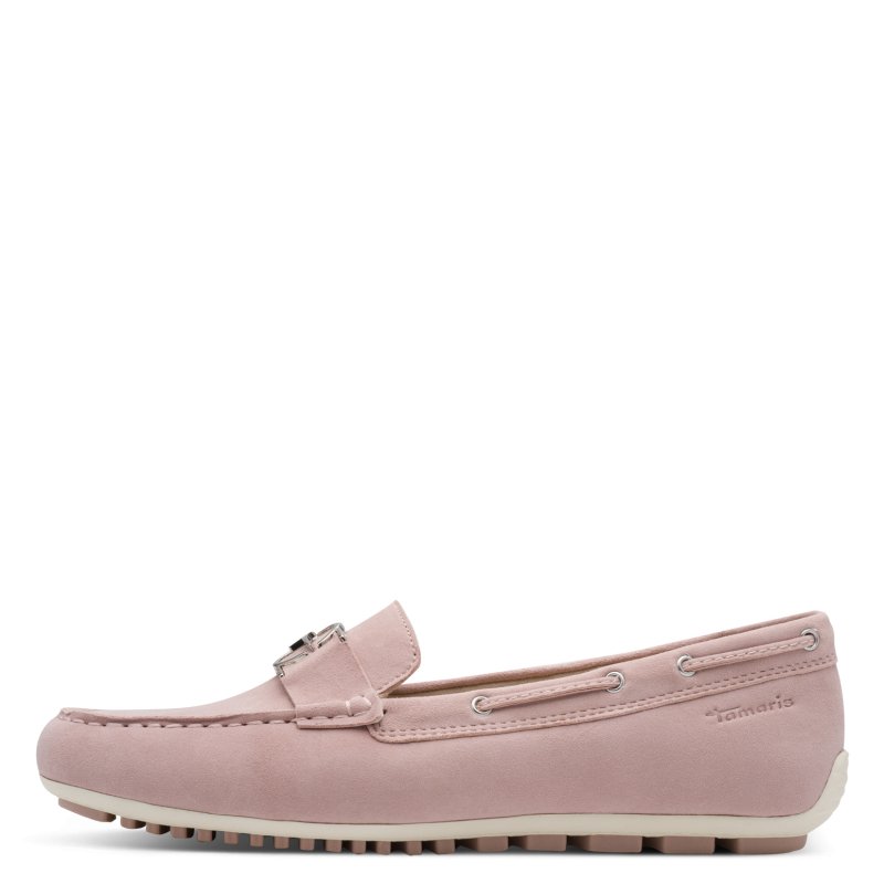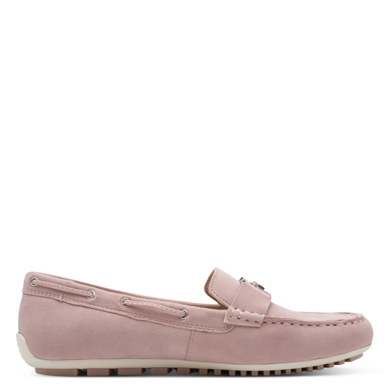 En super smart og meget komfortabel lille hyttesko / loafer fra Tamaris. Skoen er i rosa ruskind, og har fine detaljer. Sålerne er fleksible gummisåler, som kan bøje meget, og som giver en helt fantastisk blød komfort.