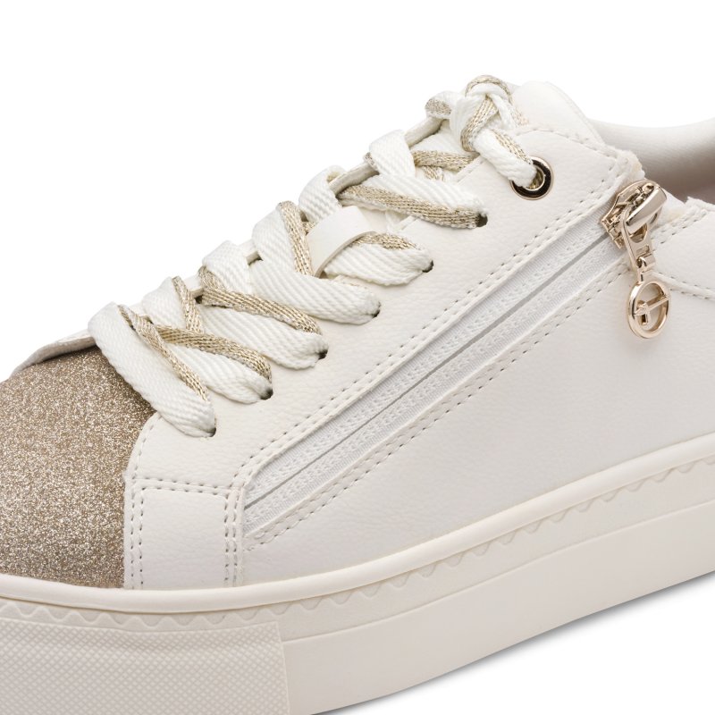 Tamaris 23779 sneakers med glitter sten i ivory