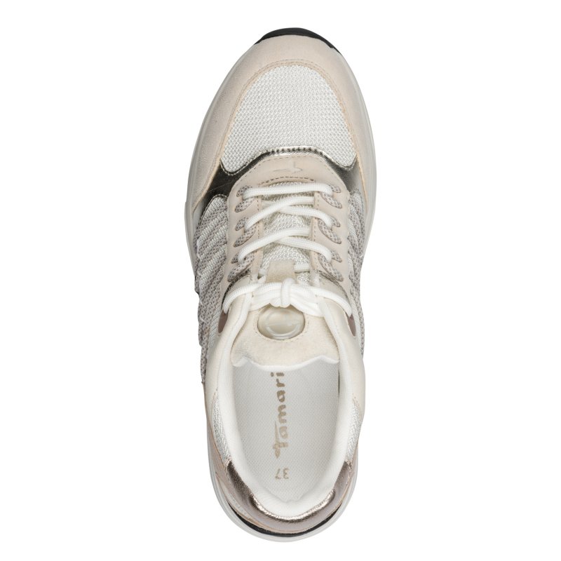 Tamaris 23779 sneakers med glitter sten i ivory