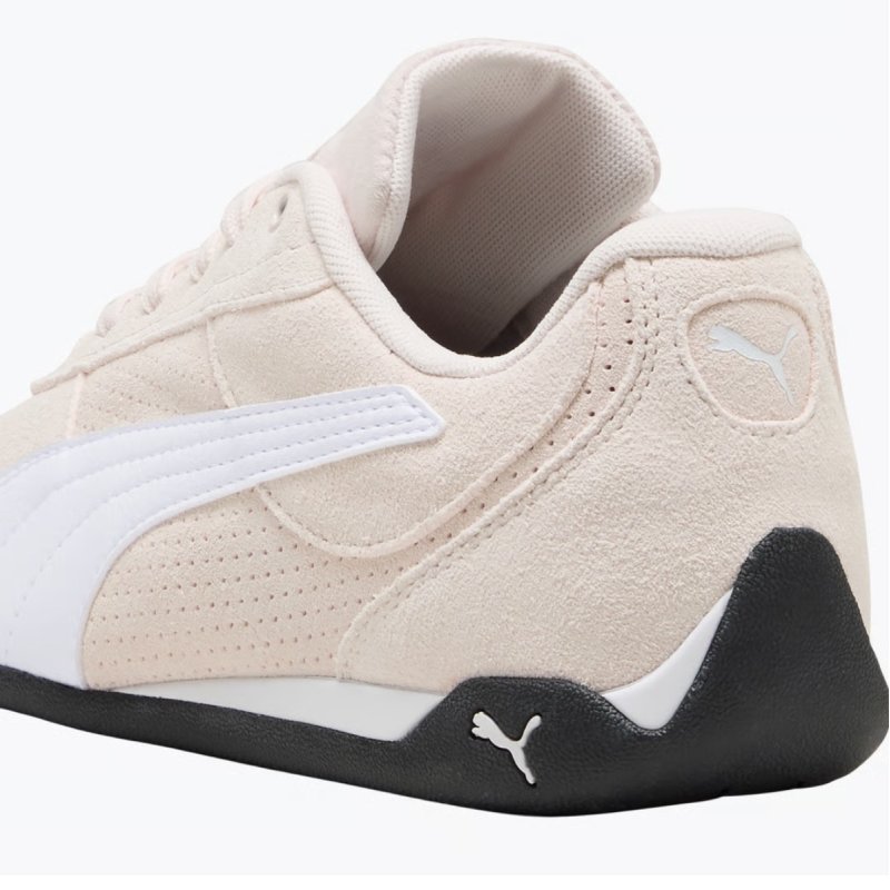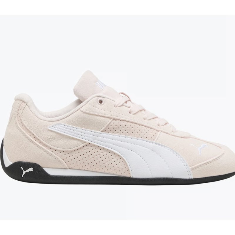 Rigtig smart sneakers fra Puma i lyserød ruskind, med hvide detaljer på, og en sort gummisål. Super smart og moderne look.