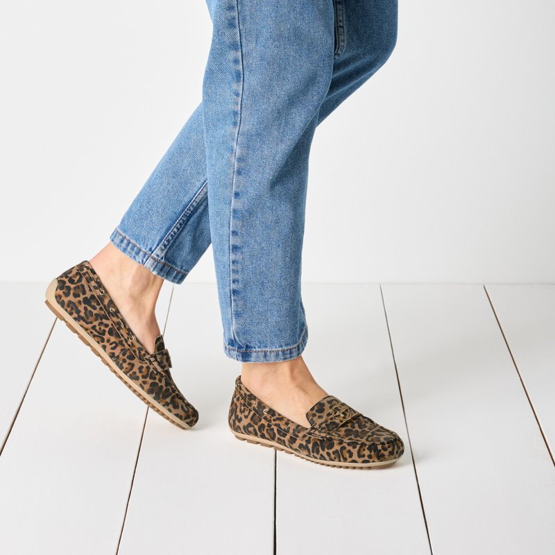 Meget lækker og komfortabel hyttesko fra Tamaris i leopard præget nubuk skind. Skoen har en fin lille logo detalje fortil i guld. Sålerne er smør bløde, og de sidder perfekt. De lækre såler er udtagelige, og kan skiftes ud