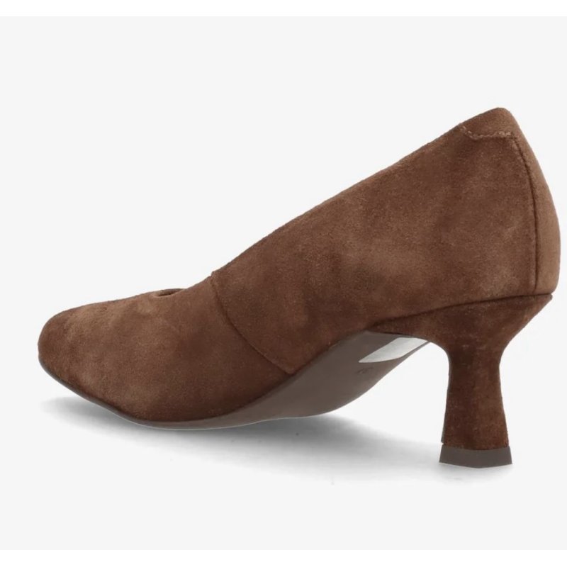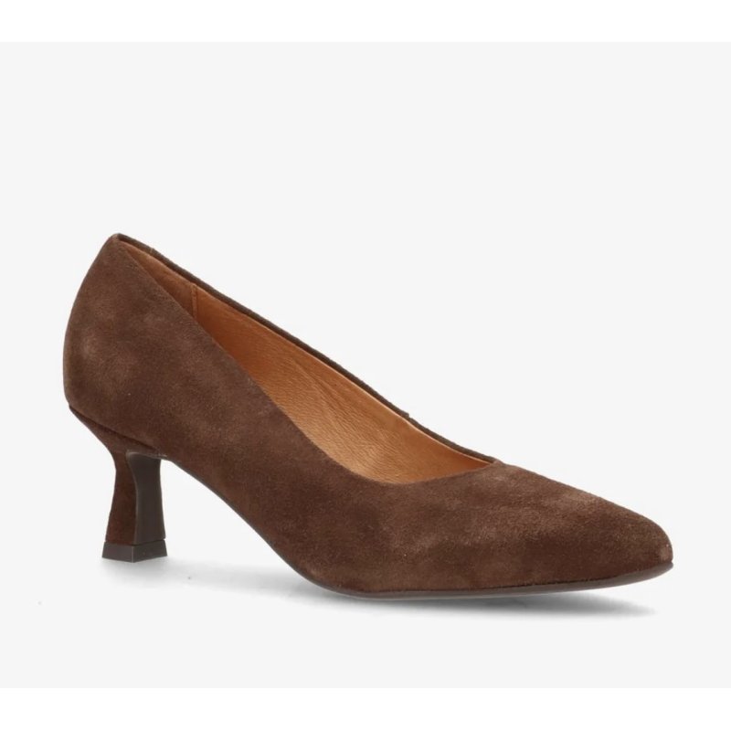 Meget smuk og elegant pumps fra Shoedesign, i en flot mørkebrun ruskind. Skoen har en perfekt pasform, en flot og knap så høj hæl. Kan bruges til både hverdag og fest.