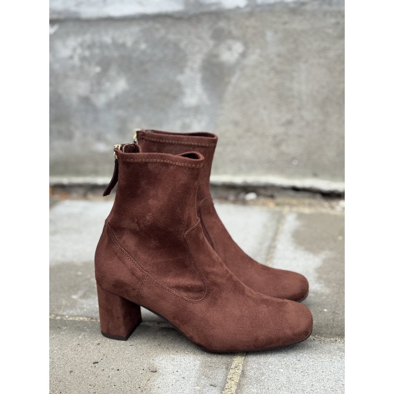 Lækker støvle fra Unisa i brun, med en god komfortabel hæl. Støvlen er skindforet, og skaft materialet er i stretch tekstil, som gør at støvlen sidder perfekt til benet.
