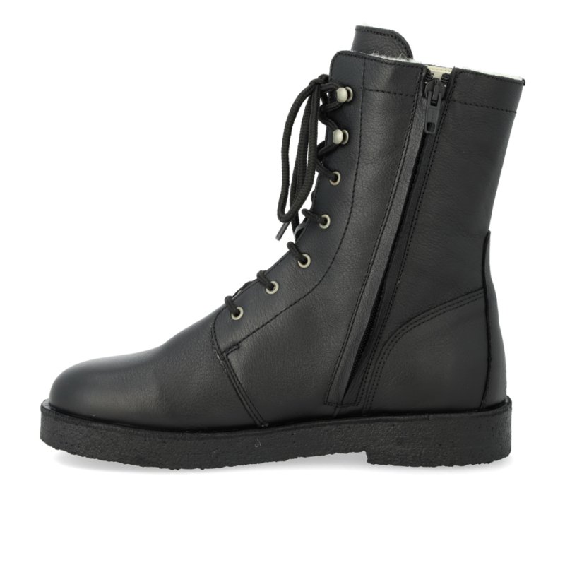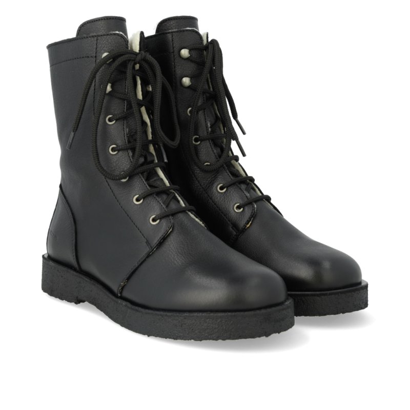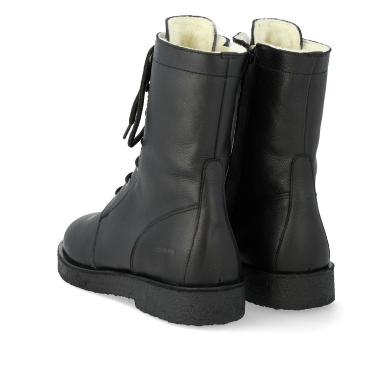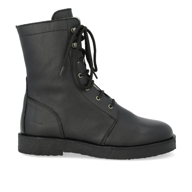 De lækreste vinterstøvler fra Angulus i sort skind, med lynlåse på indersiden og snøre fortil. Støvlen er foret med 100% uldfoer. Lækre bløde rågummisåler .