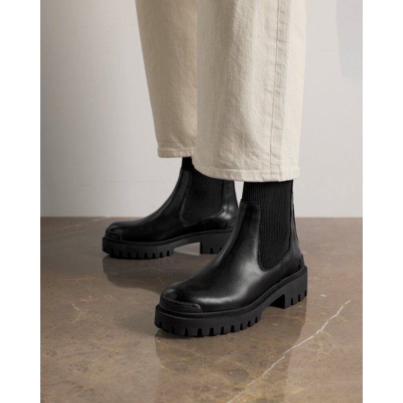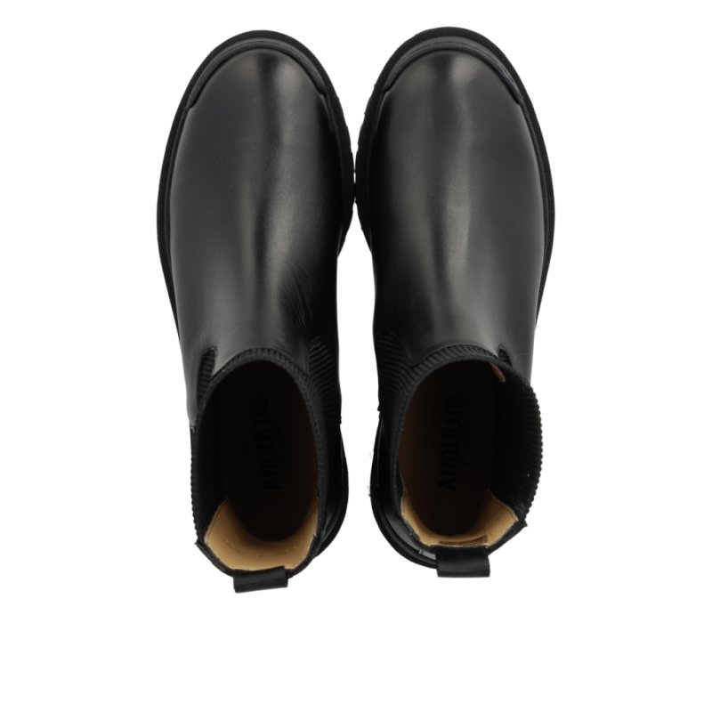 Den meget populære hacker støvle i sort skind fra Angulus, med de smarte grove gummisåler. Støvlen har elastik i begge sider, og en super komfort.