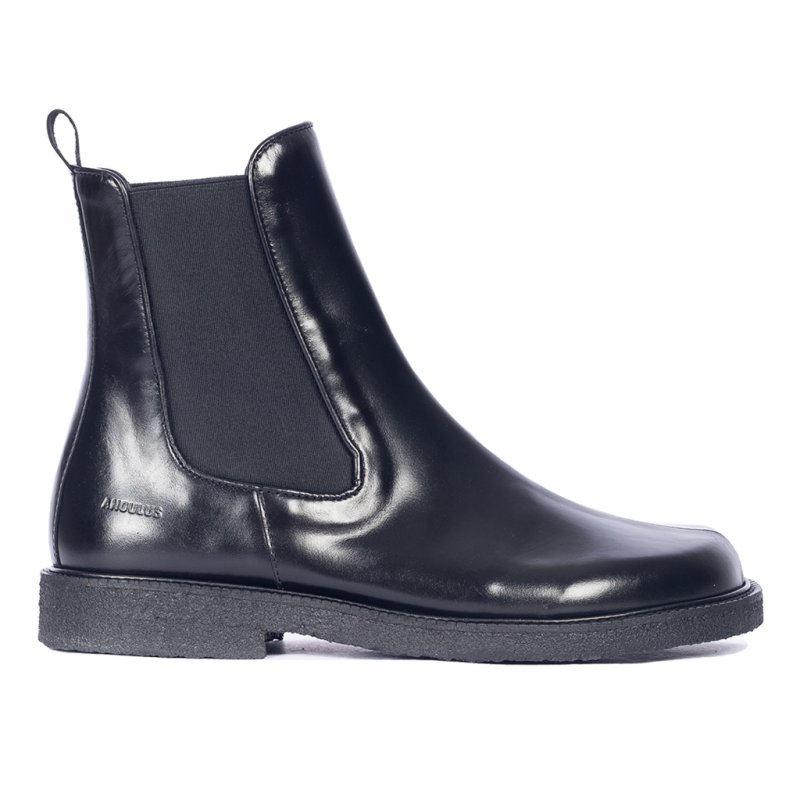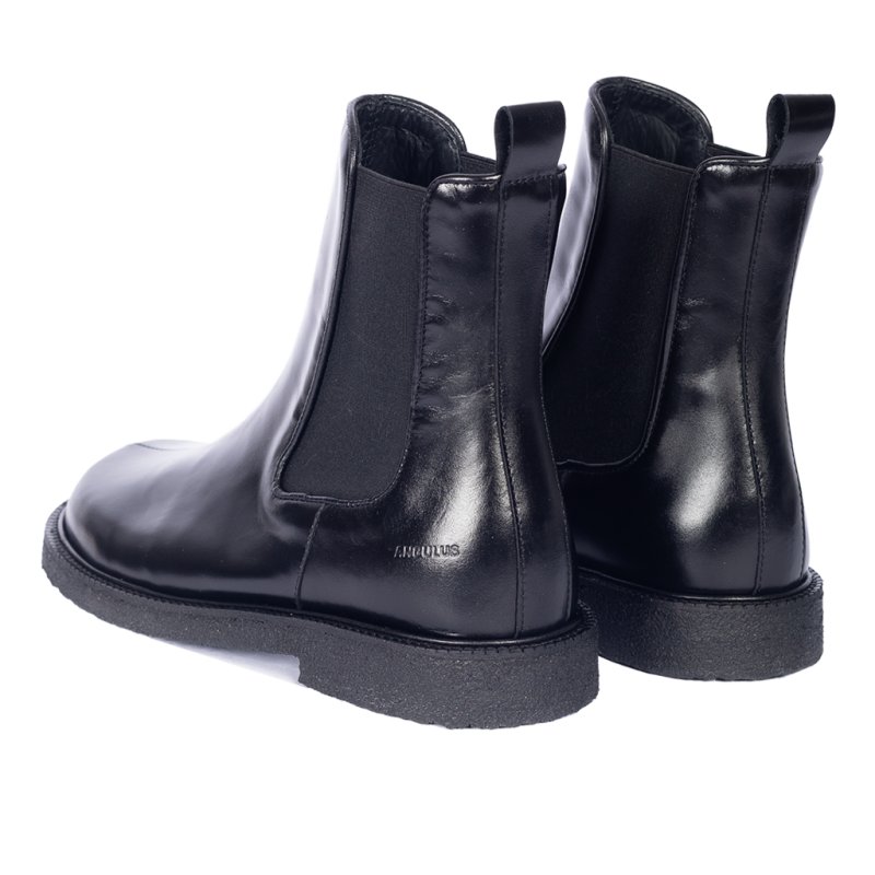 Ankelstøvler fra Angulus i sort skind med bred pasform. Støvlen har elastik i siderne, rågummisål og fine eksklusive detaljer.