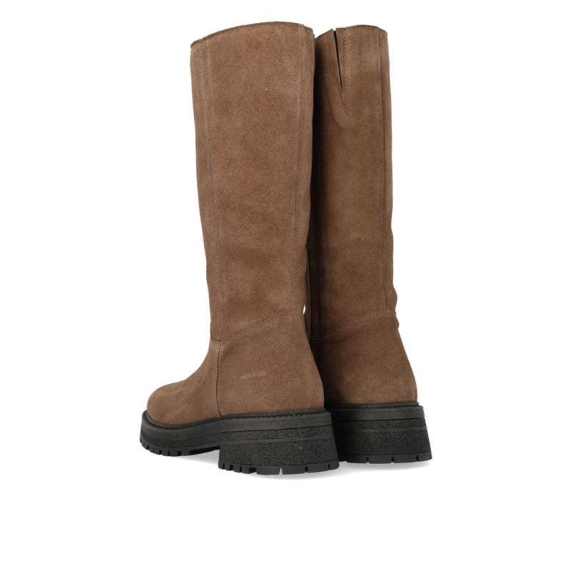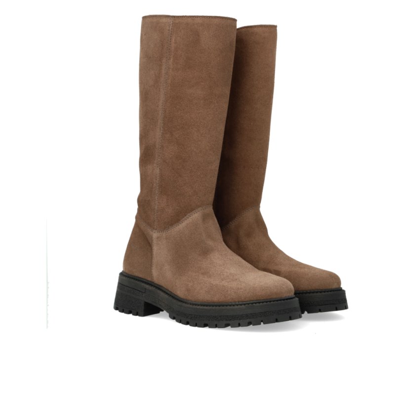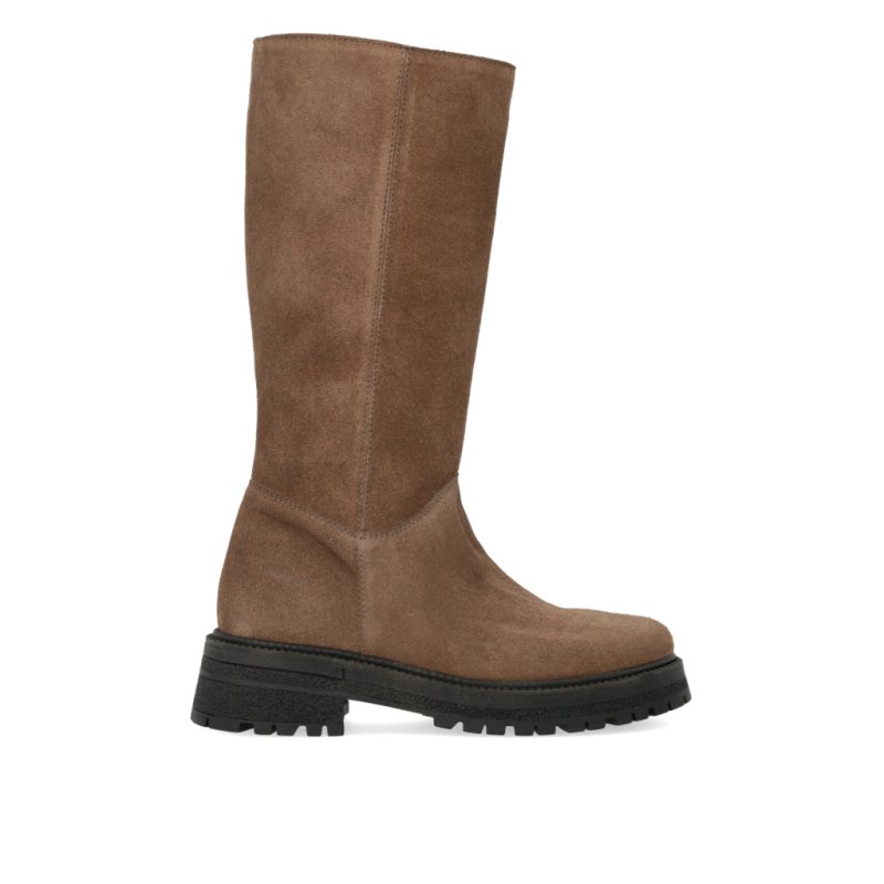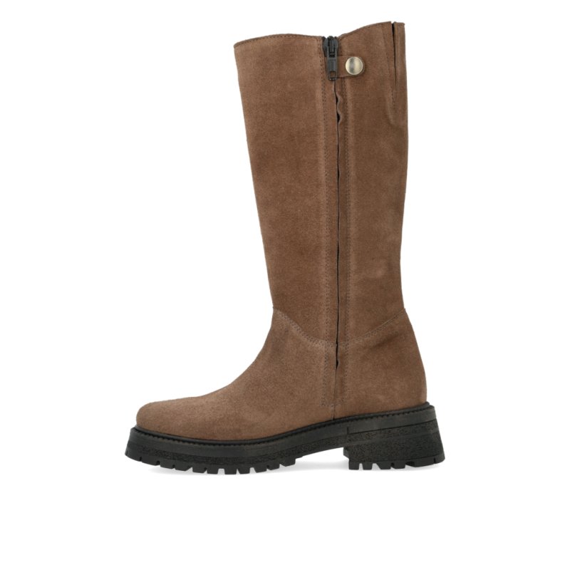 Flot støvle fra Angulus med 3/4 langt skaft. Støvlen er i taupe ruskind, lynlåde på indersiden og grove gummisåler.