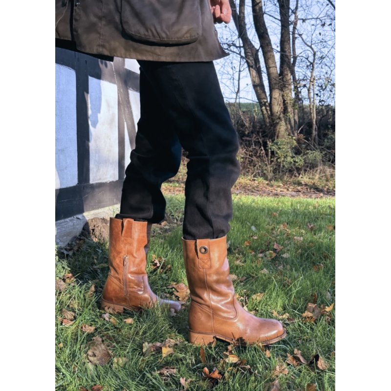 De populære Cashott støvler i mellemlang i flot cognac farvet skind. En bestseller model der nu er kommet i flere længder og farver. Støvlen er løs i skaftet, og har en lille lynlåse på indersiden. Super fedt look, og smart til både bukser og kjoler.